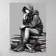 This evocative painting tells a story of solitude and strength, featuring a 40-year-old woman with short, vivid red hair, seated alone in a moment of quiet reflection. The artist uses the stark contrast between her bold, fiery hair and the subdued surroundings to emphasize her isolation and introspection. Her expression, a mix of sadness and resolve, invites the viewer to contemplate the depth of her emotions and the power of her silent fortitude.