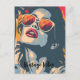 A confident woman with a sleek, polished look, dressed in a fitted, vintage-inspired outfit. Her cat-eye sunglasses and bold red lipstick exude classic glamour. She has a stylish updo or perfectly curled hair, and her poised demeanour reflects the timeless elegance of mid-century fashion.