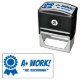 This positive rubber stamp design features the message "A+ WORK!" and a personalised educator's name. It also features a decorative prize ribbon icon. It could be used by a school teacher, educator, or tutor when grading student work, to acknowledge that a student has done an exceptional job.
