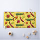A peri-peri, friggitello, habanero, rocoto, jwala, and shishito chilli pepper are decorated with patterns from the region where they were originally cultivated or are commonly eaten and sit on a yellow background with patterns inspired by tattoos worn by native peoples in the Amazon to create a fun repeating pattern that reflects the origins and spread of these tasty, and often spicy fruits.
