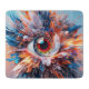 A vibrant and surreal depiction focuses on a highly detailed eye surrounded by an explosion of abstract and colourful elements. The composition features a blend of feathers, organic shapes, and bursts of colour radiating outward, creating a dynamic and captivating scene. Digital Art Photoshop CS5