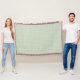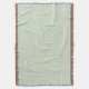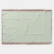 "A woven blanket with a subtle green and beigহe checked pattern displayed horizontally and vertically. It has brown tassels along the edges."