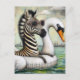 A Zebra on Vacation in a Floating Swan Postcard