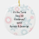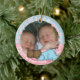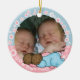 African American Twin Boy and Girl Baby 1st Christmas customisable keepsake ornament with two sleeping babies, a boy and a girl, in blue and pink sleepers, and soft snowflake design. You can easily customise this ornament with your twins photo and add your own text to the back. It's great as a 1st Christmas gift and will be a memento for years to come.