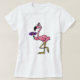 Turn loose your inner silly! Hilarious funky cartoon pink flamingo holding a daisy flower t-shirt design. He's full of personality and a great gift idea.