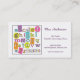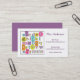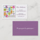 Great business card for any elementary or preschool teacher, tutor, daycare provider, babysitter or child care professional. Original illustration of the alphabet and numbers makes a wonderful statement in fun shades of teal, orange, lime green, pink, orange and purple. Customise the text on the front and back to suit your needs.