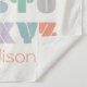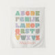 A colourful, customisable Alphabet Chart / tapestry for a child’s room. Personalise this design with your child’s name, initials or other text. This tapestry would look great in a nursery or children’s room. Gender-neutral colours include; purple, green, orange, yellow, teal, turquoise, grey, brown, cream.