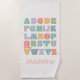 A colourful, retro Alphabet design that can be personalised for your child or baby. Inspired by retro typefaces and boho style, this design can be personalised with a name, monogram, or other text. Gender-neutral colours; purple, green, orange, yellow, teal, turquoise, grey, brown, cream.