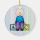Beautiful baby boy sitting on ABC Blocks. Personalised