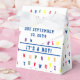 Design features a background of the alphabet in bright, colourful stencil-lettering just like that of the refrigerator magnets we all know! The phrase, "IT'S A BOY!" is displayed in blue lettering across middle of design front. Top flap tells everyone when Baby is due. When opened, Baby's name is revealed in same blue lettering. Perfect for an ABC themed Baby Shower! Designed to coordinate with the "ABC Baby Shower collection."