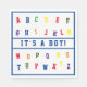 Design features the alphabet in bright, colourful stencil-lettering, just like that of the refrigerator magnets we all know! Your text is displayed in bright, blue letters across the centre of design. Also comes in red. Designed to coordinate with the "ABC Baby Shower Collection."