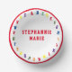 Design features the alphabet in bright, colourful stencil lettering, just like that of the refrigerator magnets we all know! Name for Baby is displayed in bright, red letters in centre of design. Designed to coordinate with the "ABC Baby Shower Collection."