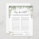 The light and airy vibe of this baby shower is full of lush sage greenery, bronze accents, and dainty white florals that pay homage to the Baby in Bloom theme while keeping it gender neutral. Green is a hue full of vivaciousness, and life making it the perfect theme for a baby shower. If you’re a nature lover, then you’re going to love this all-natural gender neutral theme! Just think of the succulent party favours. Change background colour or add graphics to match your shower theme. Need coordinating graphics please contact me for a custom order. Of course it's not required that you play games at the baby shower, but consider this: You're going to have an all-ages group, and most of the guests have probably never met one another before the party. Mixing in a few of these classic baby shower games is a perfect way to break the ice. Our double sided game cards are an elegant and practical addition to any shower. These professionally designed cards are quickly customisable. Add your custom wording to this design by using the "Edit this design template" boxes on the right-hand side of the item, or click the blue "Customise it" button to arrange the text, change the fonts and colours and to also add additional information or images to this design. Click "Customise Further" to open full editing options. If you need any coordinating items, (thank you cards, etc.) please contact me for a custom order. ****For custom requests you need my help with, do not place this merchandise in your cart. Instead, email me your request at lauralise@iyhtvdesigns.com A link to your merchandise will be emailed to you once the item is available. You can use that link to place your order. Please allow up to 48 hours.