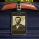A picture of the 16th President of the United States, Abe Lincoln and lines of text of his accomplishments during his presidency.
