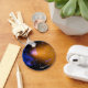 This composite image of the galaxy cluster Abell 3376 shows X-ray data from the Chandra X-ray Observatory and the ROSAT telescope in gold, an optical image from the Digitized Sky Survey in red, green and blue, and a radio image from the VLA in blue. The "bullet-like" appearance of the X-ray data is caused by a merger, as material flows into the galaxy cluster from the right side. | "Smithsonian" and the Smithsonian logo are registered trademarks owned by Smithsonian Institution.