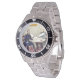 Has heft and feel of expensive stainless steel quartz watches. Good band with safety catch. I removed links, which is easy because engraved arrows show direction to push the linking pins. As always by this seller, the image (a railroad logo) is a perfect reproduction of my emailed image, and is precisely spaced and aligned.