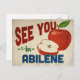 A charming Abilene Texas vintage travel postcard featuring a lovely red apple, along with fun retro style text that says, "See you in Abilene"