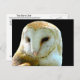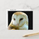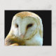 A postcard of a handsome Barn Owl Profile against a black background. Some facts about the bird is provided on the back of the card.