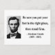 "Be sure you put your feet in the right place, then stand firm." - Abraham Lincoln