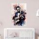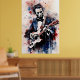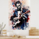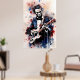 Watercolor painting of Abraham Lincoln shredding on the guitar.