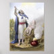 Vintage colour lithograph showing Abraham offering up Isaac. Abraham was commanded by God to offer his son up as a sacrifice. The patriarch travelled three days until he came to the mount that God taught him. Proceeded alone to the mountain, Isaac carrying the wood upon which he would be sacrificed. Along the way, Isaac repeatedly asked Abraham where the animal for the burnt offering was. Abraham then replied that God would provide one. Just as Abraham was about to sacrifice his son, he was prevented by an angel, and given on that spot a ram which he sacrificed in place of his son.