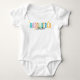 Dress your baby in style with this adorable customizable baby bodysuit. Featuring playful lettering in bright colors and accented with twinkling yellow stars, this simple text design radiates sweetness and charm. Customizable text that says, “Absolutely Adorable,” allows you to personalize the message, making it perfect for celebrating a baby’s arrival, creating a memorable baby shower gift, or for sharing exciting news as a pregnancy announcement for proud grandparents-to-be. This design will make a delightful keepsake. Whether you’re welcoming a newborn or gifting a new mom, this charming bodysuit is sure to bring smiles all around.