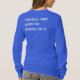 I love this shirt. I had written to the artist asking her if this picture was available on a shirt, and she wrote me back telling me where I could find the shirt. These shirts can be custom made to have a different saying. I loved this saying and went with it. The artist wrote me back later to tell me that she had seen my order go through. How's that for service? Pretty special. It's just as displayed. Perfect!