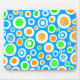 An attractive hand drawn abstract design made up of circular shapes in white, orange, green and blue.