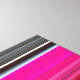 Horizontal fields of bright cerise and unexpected shades of gray