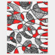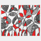 An original hand drawn abstract design made up of overlapping elliptical and semi-elliptical shapes with areas filled in with spots, lines, circles or solid colour.