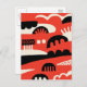 A bold original hand drawn abstract design in black, orange red, and cream.