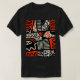 A bold original hand drawn abstract design in black, orange red, and cream.