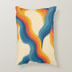 Abstract 70s Retro Orange Blue Wavy Stripe Pattern Decorative Cushion