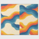 Abstract 70s Retro Orange Blue Wavy Stripe Pattern Wrapping Paper