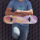 Abstract Acrylic Paint Backdrop with Pink Powder Skateboard