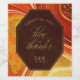 You get both glamour and high impact with this coordinating wedding suite that features abstract agate patterns, textured with faux-crystals and highlights in glittering faux gold foil. Striking colour combinations, like this collection with it's bold palette from hot orange to golden yellow, create the background for the pieces in this coordinated set. This wedding `Thank You`wine label features all the above plus elegant calligraphy on a hexagon label to hold your text. A template is provided to easily add your names, wedding date and wine. View the collection link on this page to see all of the matching items in this beautiful design or search ID827 to see additional colour choices.