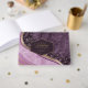 You get both glamour and high impact with this coordinating wedding set that features abstract agate patterns, textured with faux-crystals and highlights in glittering faux gold foil. Striking colour combinations, like this suite with it's luxe palette from muted grape and mauve to soft orchid pink, create the background for the pieces in this coordinated set. This wedding Guest Book features all the above plus elegant calligraphy on a hexagon label to hold your text. A template is provided to easily add your names and wedding date. View the collection link on this page to see all of the matching items in this beautiful design or search ID827 to see additional colour choices.