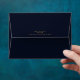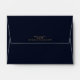 You get both glamour and high impact with this coordinating wedding set that features abstract agate patterns, textured with faux-crystals and highlights in glittering faux gold foil. Striking colour combinations, like this suite with it's night-sky palette from deep midnight blue to soft violet, create the background for the pieces in this coordinated collection. This matching envelope features the above described abstract interior and an optional dark navy blue exterior. A template is provided to easily add your names and address. View the collection link on this page to see all of the matching items in this beautiful design or search ID827 to see additional colour choices for this design.