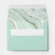 You get both glamour and high impact with this coordinating wedding set that features abstract agate patterns, textured with faux-crystals and highlights in glittering faux gold foil. Striking colour combinations, like this suite with it's soft pastel palette from mint green to teal blue, create the background for the pieces in this coordinated collection. This matching envelope features the above described abstract interior and an optional soft mint green exterior. A template is provided to easily add your names and address. View the collection link on this page to see all of the matching items in this beautiful design or search ID827 to see additional colour choices for this design.