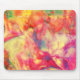 This mouse pad has a beautiful abstract pattern in colours of orange, yellow, pink, blue-green and cream reminiscent of alcohol ink art.