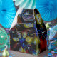 Stamp of abstract design with curved lines in light colours and a smooth gradient that looks like a layer of thick, twisted crystalline glass over rounded designs with colour tones and spots that resemble almonds or chestnuts, and some shades of beautiful dark red and a blue with light undertones. - I have inserted more versions, below the visible image there are two others, you can use the options available on the site and remove the image from above to choose the other version.