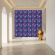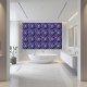 This stunning tile features a high-resolution image of a natural amethyst geode slice, showcasing its intricate crystal formations and vibrant purple, blue, and white hues.