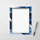 Colour blocks in blue, grey, and black, intersected by white lines, makes an eye-catching and bold background for this stationery paper.
