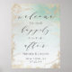 Ombre Teal Aqua Frosted Foil Watercolor Wedding Design with hand painted watercolor wash fading Mint Green to white background texture. A Chic and Modern Look for a spring or summer wedding, with soft pastel colour palette : Teal, Aqua, Mint and gold faux foil veins and details, and a modern trendy brush Script lettering Font - Personalised Wedding Reception Welcome to our Happily Ever After Sign!
