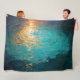 Abstract Aqua Waves with Golden Sunlight Fleece Blanket