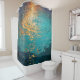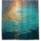 Abstract Aqua Waves with Golden Sunlight Shower Curtain