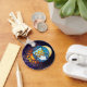 Abstract Aquarius symbol in bright colours with the sun, moon and stars on a background of stars from the Hubble space telescope.