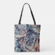 Abstract art brush textured roses print blue beige tote bag