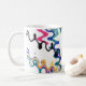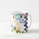 Colourful digital art squiggles and waves on a white mug. Very modern and artistic...