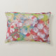 Abstract "floral-like" pillow, a mixed-media work of art, hand-painted with reds, light green, blue, white and peach, making it a most-desirable attraction for your home.